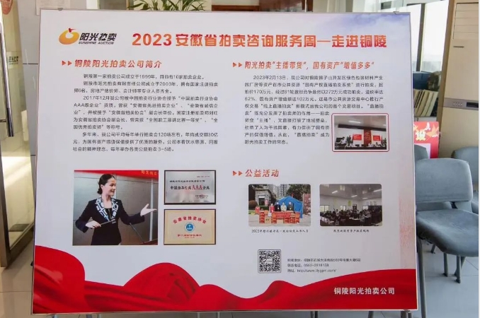 恰逢陽(yáng)光拍賣20周年,為進(jìn)一步推動(dòng)拍賣行業(yè)的健康發(fā)展,提高拍賣協(xié)會(huì)的服務(wù)質(zhì)量和水平,11月24日,銅陵陽(yáng)光拍賣公司組織開展“服務(wù)拍賣,共創(chuàng)未來”拍賣咨詢服務(wù)周活動(dòng),省拍賣行業(yè)協(xié)會(huì)、市商務(wù)局、市公共資源交易中心以及多家拍賣企業(yè)代表參加此次活動(dòng)。